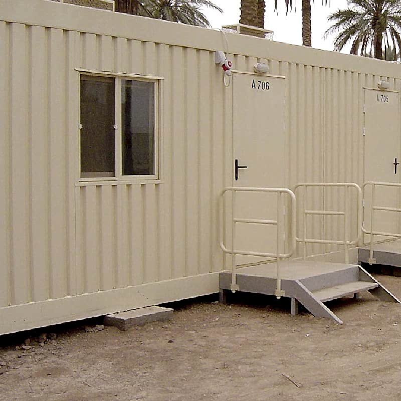 Dorçe prefabrik inşaat farklı sahalarda Amerikan Üslerinde hız, organizasyon ve mühendislik gerektiren, prefabrik askeri kamp inşaatlarını zorlu şartlar altında tamamlamıştır. Projelerde gördüğünüz prefabrik askeri üsler ve kışlalar anahtar teslimi kamp projeler tamamlanmıştır. Yönetim Kontrol binalarının tasarım ve inşaatı Dorçe tarafından Modüler Prefabrik Çelik Binalar ve Modüler Konteyner Üniteleri kullanılarak gerçekleştirilmiştir. Modüler Konteyner Üniteler ve Modüler Prefabrik Çelik Bina sistemleri kullanılarak gerçekleşen projeler; mühendislik, üst yapı ve alt yapı işleri dahil olacak sekilde saha, zemin ve temel işleri, beton işleri, site yolları, araç park alanları, peyzaj işleri, oyun alanları, güvenlik çitleri, elektrik ve mekanik tesisat işleri, yangın algılama, alarm, kontrol, koruma sistemleri, sığınaklar, jeneratörler, içme suyu ve atık su arıtma sistemleri, mobilya, ekipman, test ve devreye alma işlerinin tümü Dorçe tarafından tamamlanmıştır, projelerin tüm taşıma işlemleri hava nakliyesi ile yapılmıştır.