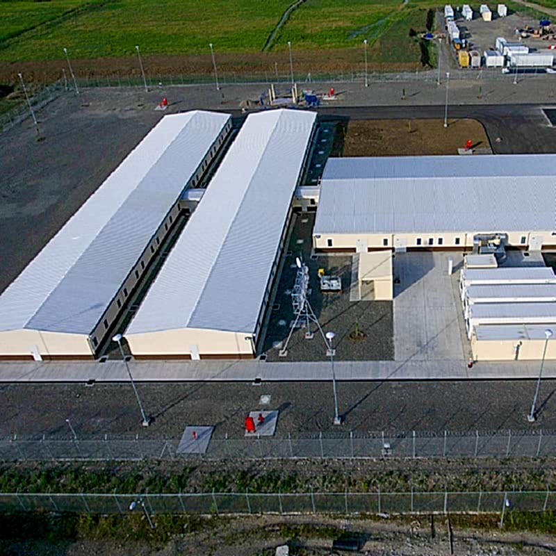 Ön Üretimli Ağır Çelik, Demonte Konteyner ve Ön Üretimli Üst Korumalı Yapı sistemleriyle inşa edilen prefabrik yaşam destek merkezleri, havan toplarına dayanıklı çatı gibi sıra dışı özelliklere sahiptir. Her türlü havan topu saldırısına karşı koruma sağlayan, kurşun geçirmez yapılardan oluşan; güvenlik bariyerleri ve etrafına kazılmış hendekler, t-duvarlar, texas bariyerler, hesco bariyerler, güvenlik çit sistemleri, bina üzeri çelik koruma yapıları, özel kum torbaları, koruma platformları ile güvenlik kuleleri, iletişim ve güvenlik sistemleri ile emsallerine kıyasla en üst seviye güvenlik tedbirlerine sahip, entegre bir yaşam destek merkezleri tamamlanmıştır.
